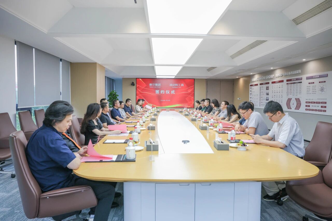 On the afternoon of July 26th, a grand signing ceremony was held at the "Altruism" conference room in the Sellers Innovation Building for the equity investment agreement between Sellers Union Group and Rollingdog Tools. Attendees included leaders and department representatives from Sellers Union Group, namely Patrick Xu, Wu Ying, Wang Caihong, Wu Zucheng, Meng Xianglong, Ji Fujian, Chen Qinyuan, Kong Ziyan, Liao Youqin, and leaders and representatives from Rollingdog Tools, such as Zhang Jiyao, Yu Songsong, Lu Shaocan, Yu Ting, Chen Yinghua, Keith, Wang Zhiqiang, and Jiang Yan. Additionally, BESTAR TOOLS founding partners Wu Yancan and He Shaocheng, as well as Lingge Design founder Wen Jiajia, were also invited to the event.
